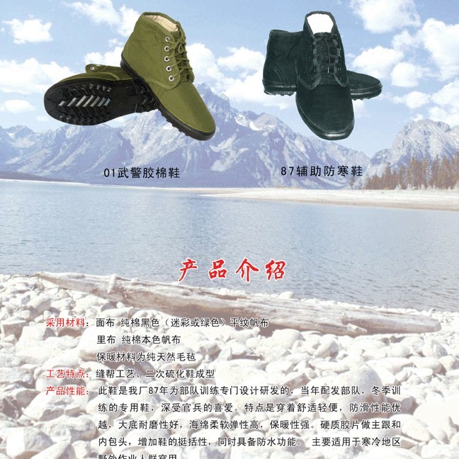 我公司生产的职业装鞋靴、手套和皮带服务于国家着装单位和央企各大集团。目前我们生产的鞋类结构有:硫化鞋系列、模压鞋系列、冷粘鞋系列,固特异鞋系列产品畅销全国各地。